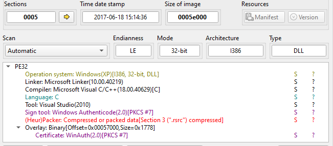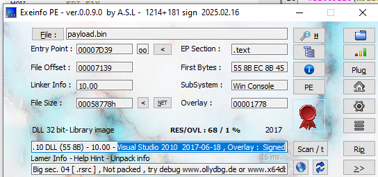 Open the malware using ExeInfo PE and DIE (Detect It Easy):