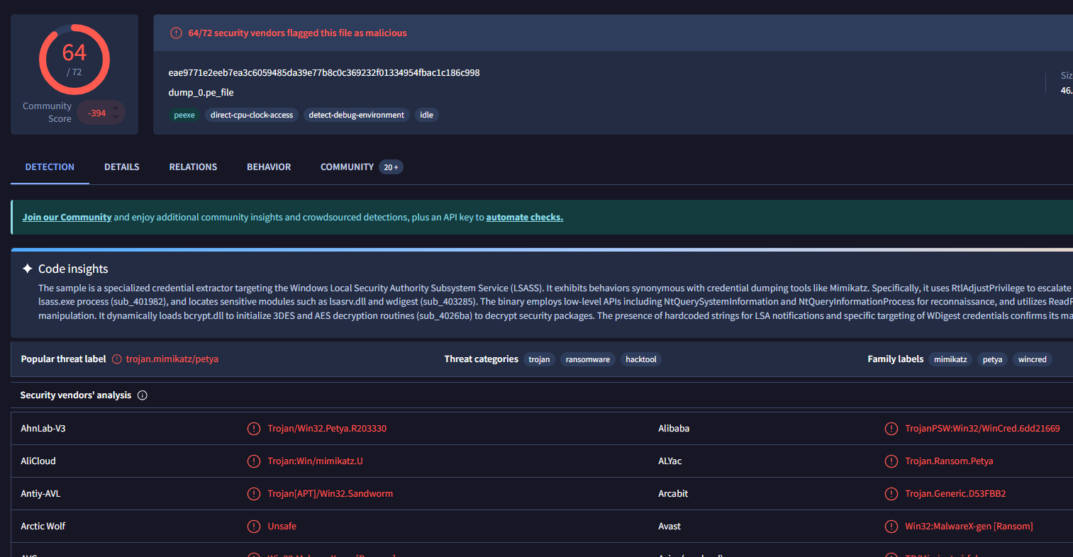 dump_0.pe_file: mimikatzdump_1.pe_file: Petya DLL (does not relate to this analysis)dump_2.pe_file: psexec tool